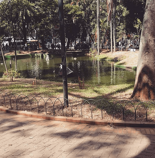 As árvores, com seus troncos robustos e copas amplas, adicionam profundidade e camadas às fotos. Caminhar ao redor do lago permite buscar diferentes perspectivas, explorando contrastes entre luz e sombra, recortes de galhos e reflexos sutis que mudam a cada passo. É um dos locais mais versáteis da praça para criar composições naturais dentro de um contexto urbano.