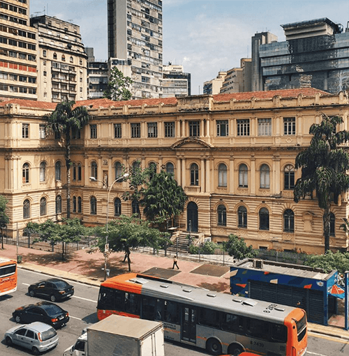 As fachadas modernistas que cercam a Praça da República formam um dos cenários urbanos mais marcantes de São Paulo. O destaque absoluto é o Edifício Itália, cuja verticalidade imponente cria linhas fortes e dramaticidade nas composições fotográficas. Sua presença contrasta com o verde da praça, permitindo enquadramentos que misturam natureza e arquitetura em um único clique. Ao caminhar pela Avenida Ipiranga, a sucessão de prédios modernistas e ecléticos oferece uma variedade de texturas, janelas, molduras e detalhes que enriquecem qualquer ensaio urbano.