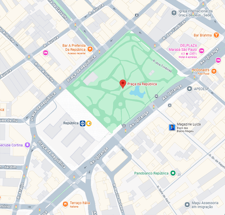 A Praça da República é um dos pontos mais estratégicos e simbólicos de São Paulo, reunindo mobilidade, história, cultura e acessibilidade em um único endereço. Sua localização central faz dela um ponto de partida ideal para quem deseja explorar o Centro Histórico e as regiões vizinhas, além de servir como referência para moradores, turistas e profissionais que circulam diariamente pelo coração da cidade. Com ruas icônicas, bairros importantes ao redor e fácil acesso por metrô, ônibus e vias principais, a República permanece como um dos espaços mais representativos e funcionais da capital paulista.