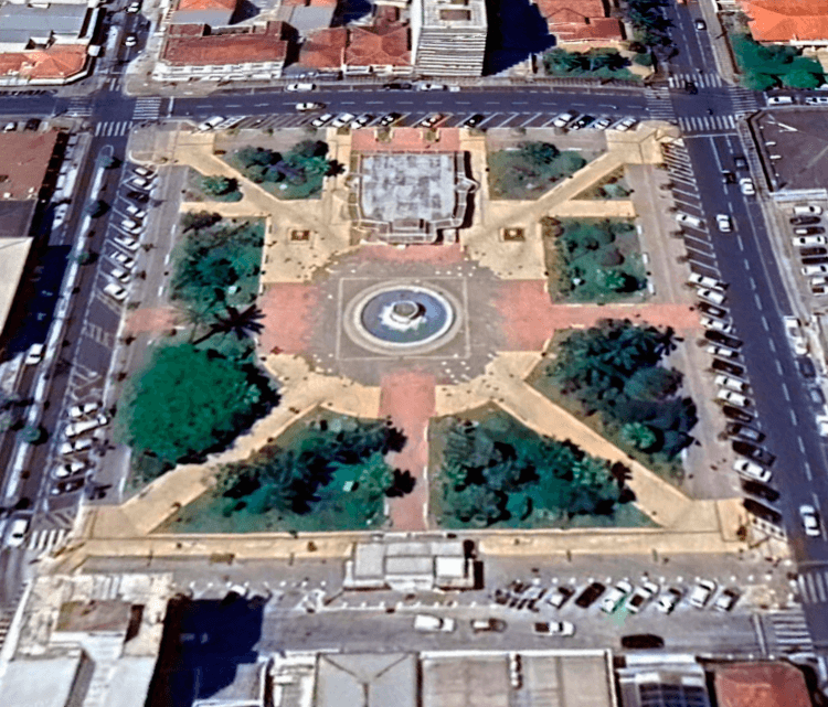 A praça é um espaço público histórico e cultural no centro da cidade, ideal para passeios ao ar livre, contemplar sua fonte luminosa e jardins revitalizados e aproveitar momentos de convivência com a comunidade, especialmente durante eventos e decorações sazonais na região central.