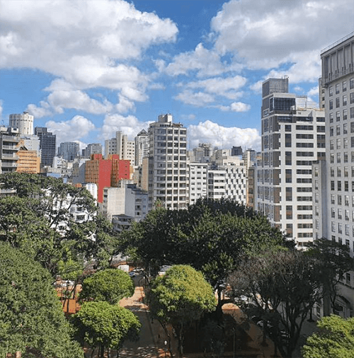 • Da Avenida São Luís: a praça está praticamente ao lado, integrada ao conjunto modernista da região.